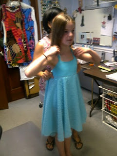 But my favorite part of prepping for the competition is Zoe's solo costume! We got lots of great ideas from the national dance competition in Florida this July and Zoe is great at sketching out our ideas. Last weekend we went to pick out the fabric and color of the costume and also had an initial appointment with the costume designer, Lorna. Today we went back to see Lorna for Zoe to have her first costume fitting. We are so excited about her costume and think it's going to be beautiful! Here's some pictures of our journey so far: